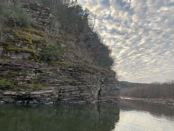 Cool clouds over the bluffs and the Lower Mountain Fork River